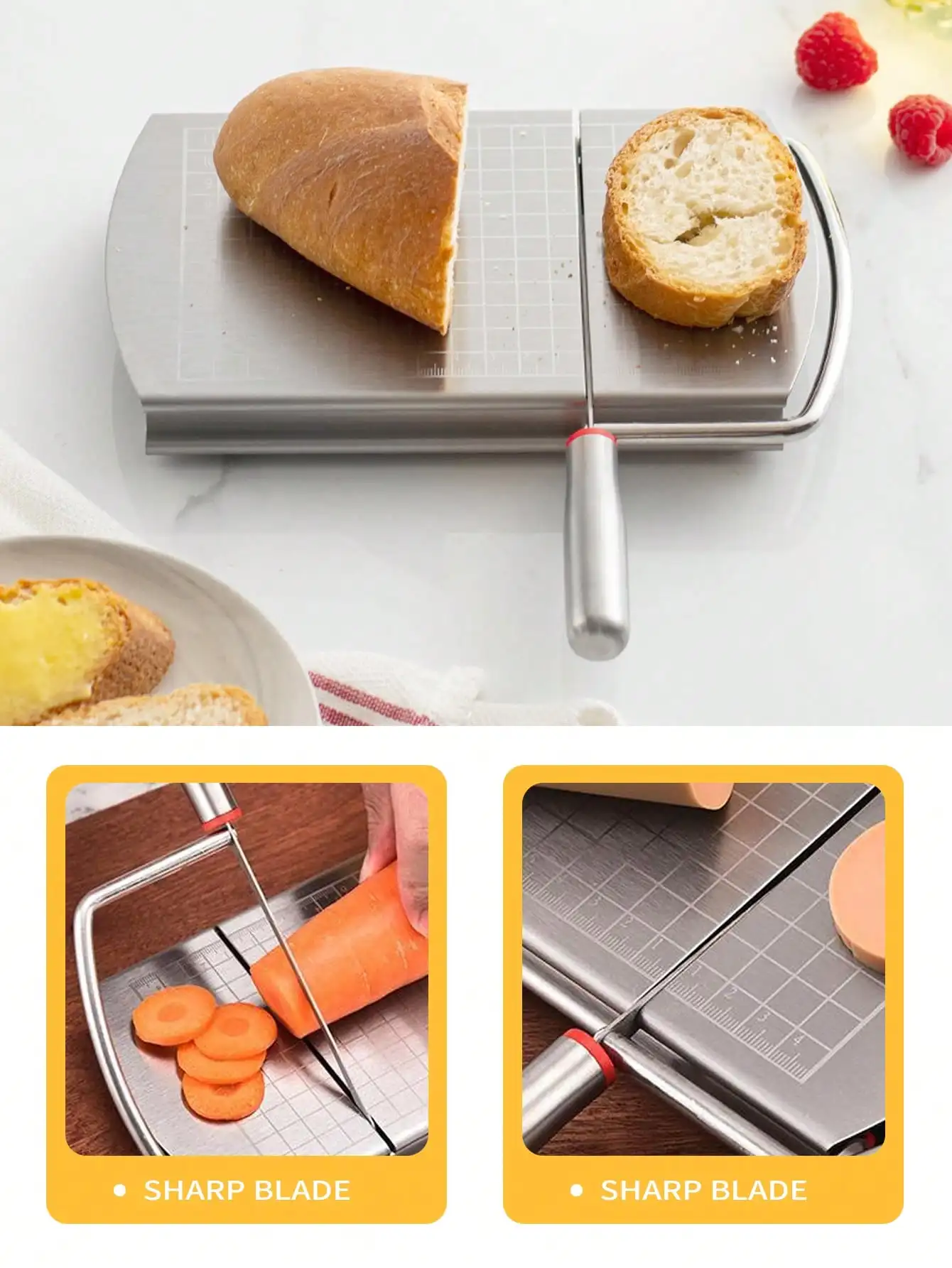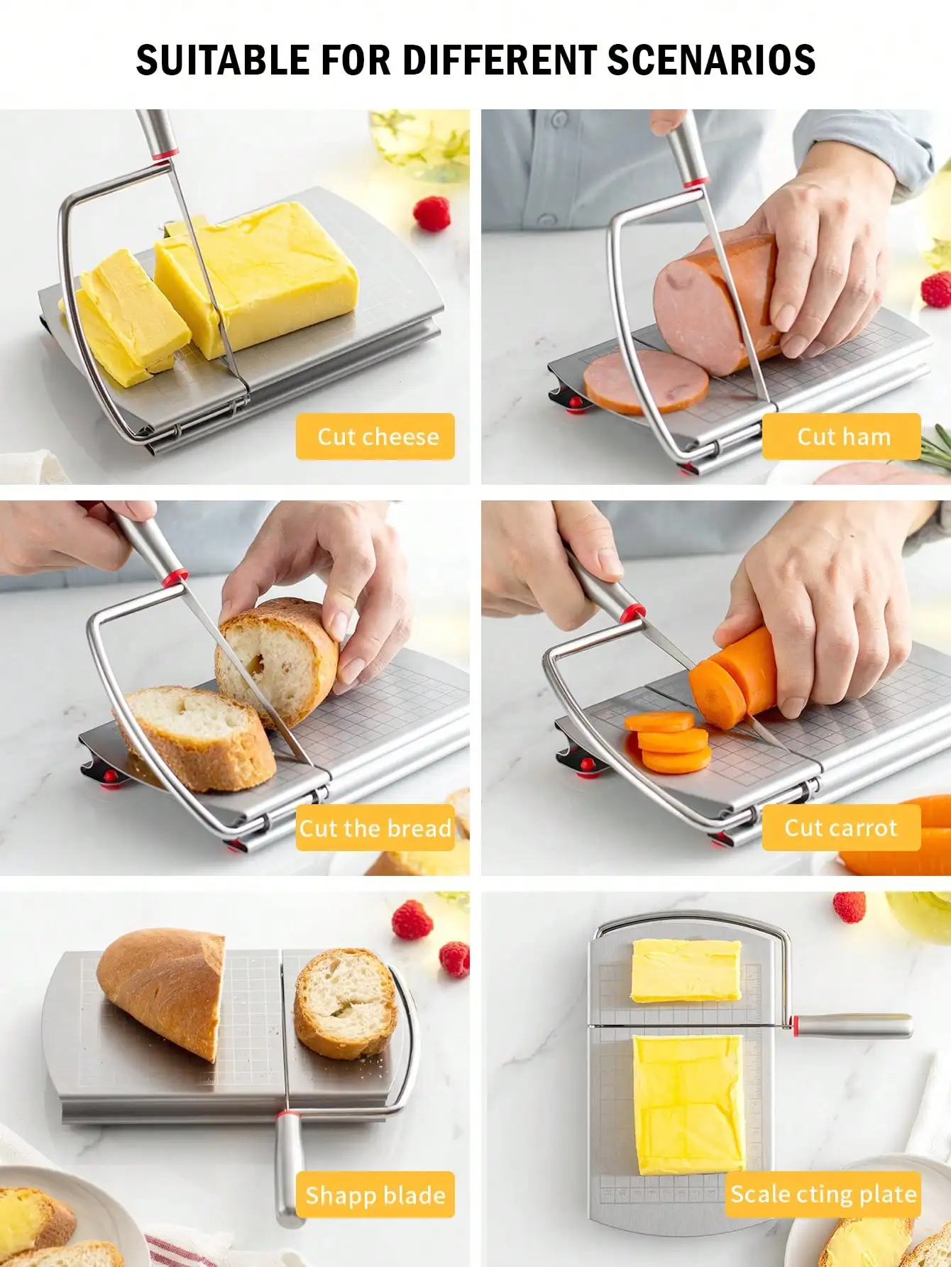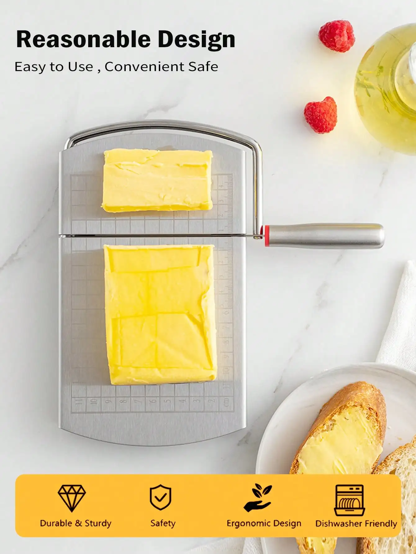 Leeseph Stainless Steel Cheese Slicer Cutter Multipurpose Food Cutter with Blade Cheese Cutter Board Accurate Size Scale