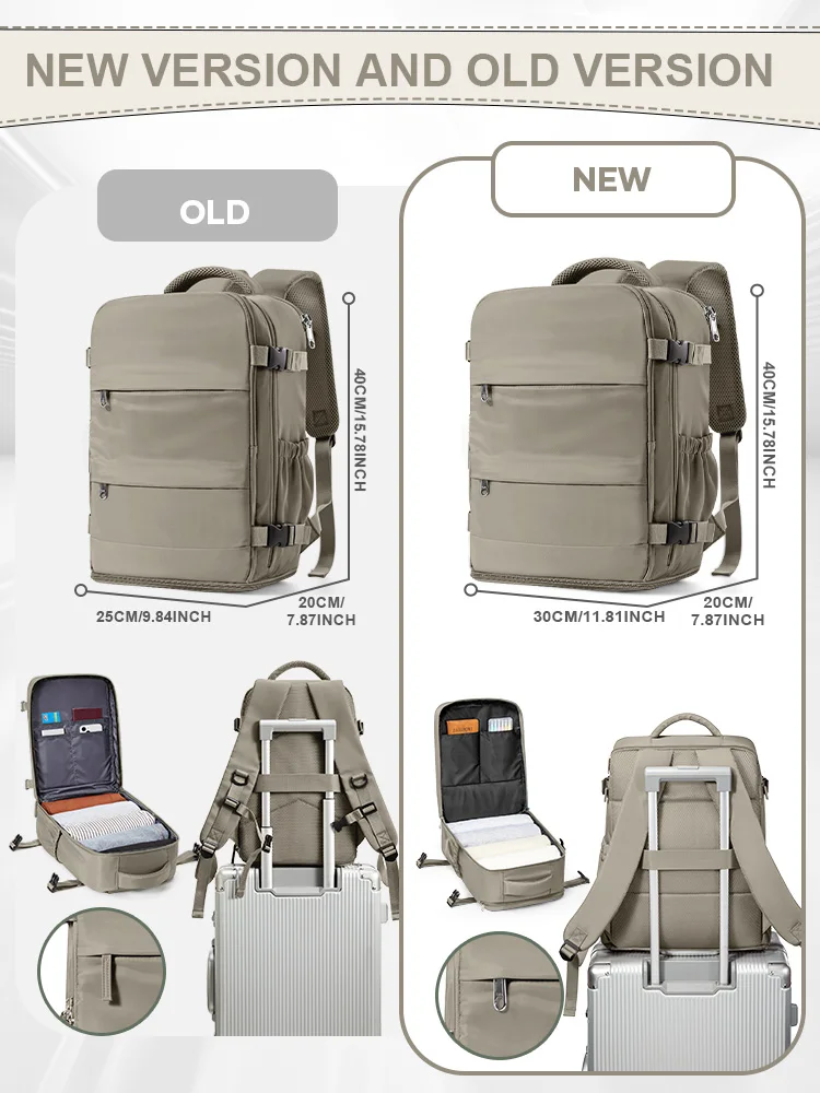 This brown colors backpack is a new version with dimensions of 40X30X20 cm,