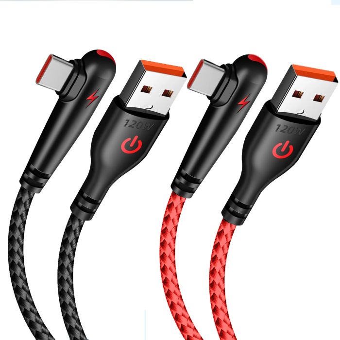 90 Degree USB Type A to Type C Cable 3A 120W Fast Charge Braided Lead 1M 2M